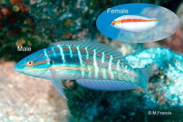Rarotonga: specimen, AMS I.39086-001 (Randall 1999 - see refs.); fieldphoto, Juv. 1/2001, SCUBA Matavera, J.Stoffers, ID M.Francis as Coris dorsomacula; fieldsights+photos, 2 IPs, Mataora Wreck at 5m and 1 male Maritime Reefer at 8m, 10/2001, ID M.Francis as Coris dorsomacula re-id Jack Randall as C. roseoviridis.