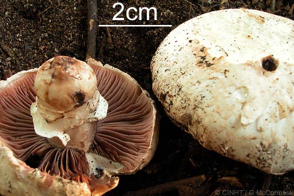 Rarotonga: fieldspecimen+photo, 2007/02, Nikao, Marjorie Crocombe compost heap, not seen previously, G.McCormack with ID as Agaricus sp. by Peter Johnston, 2007/3 from image.