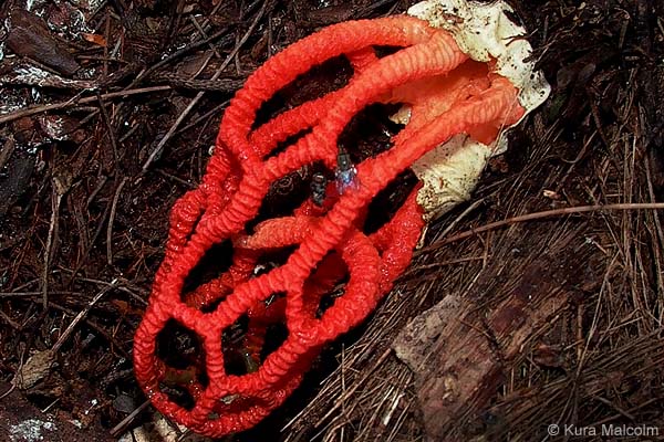 Atiu: fieldspecimen+photo, 2005/01, Kura Malcolm in pine forest, ID 2007/05 Ross Beever as Clathrus near oahuensis.