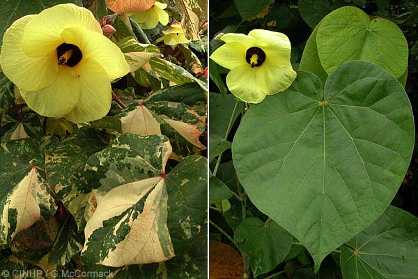GENERAL NOTE: It seems most likely that Hibiscus tiliaceus originated in Asia and initially spread westward across the Indian Ocean and eastward across the Pacific. One way or the other it very anciently reached the Americas where it now has a variety or subspecies or very closely-related species native on the tropical Pacific and Atlantic coasts. This tree of tropical America is variously named: Hibiscus pernambucensis Arruda 1810, Hibiscus tiliaceus pernambucensis, or Hibiscus tiliaceus var. pernambucensis depending on the interpretation of its status. The interesting case for it as a separate species is found at: http://www.mcapel.hpg.ig.com.br/galls/malvaceae/Hperntili/index_eng.html.