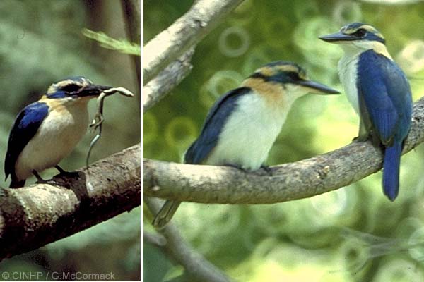 BIODIVERSITY: Globally endangered (moderately). Comment: NBSAP - Mangaia (2 of 5 wild). Comments: An endemic Kingfisher to Mangaia. Similar to the Chattering Kingfisher except that it has a ruffous