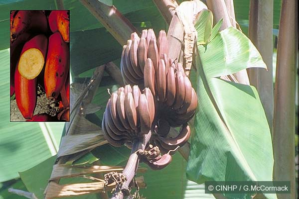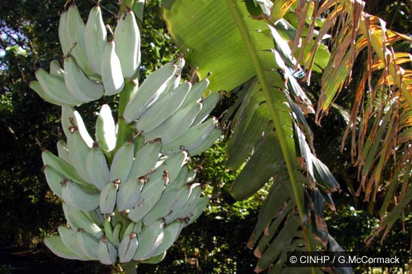 TAXONOMY: PLANTAE; ANTHOPHYTA (=Angiospermae); LILIOPSIDA (=Monocotyledones); ZINGIBERIDAE; Zingiberales; MUSACEAE. COMMENT: hybrid of $Musa acuminata@ X @Musa balbisiana@