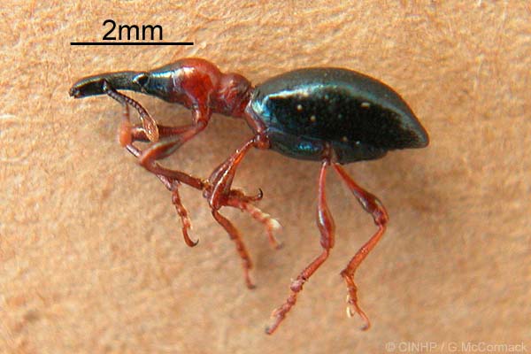 Aitutaki: specimen+photo, on Sweet Potato, 10/1975, J.C.Watt with ID as Cyclas formicarius, in MoACollection.