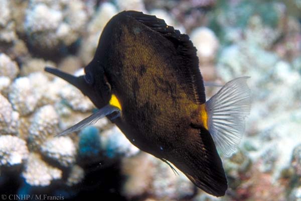 Rarotonga: sightings, black morph, (Sims88). Palmerston: Listed (Preston95). Manihiki: sightings, black morph (Sims88). Pukapuka: Photo (black morph) N.Sims (Sims88); fieldspecimen+photo, 2/2004, G.McCormack with ID as light-morph Forcipiger longirostris. Suwarrow: field ID N.Sims (Sims EIA99); sightings, black morph, (Sims88).