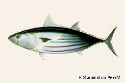 GENERAL NOTE: In 1980s made up about 40% of world tuna fishery, by purse seines and pole-and-line (often using bait-fish), and incidently on long-lines.